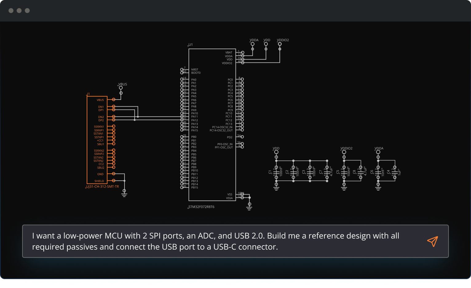 El resultado es SnapMagic Copilot, una nueva herramienta para automatizar las tareas más comunes como parte del diseño de placas de circuito. Eso incluye completar automáticamente circuitos comunes, utilizar lenguaje natural para instruir realmente a la herramienta de diseño de PCB, recomendar componentes según el costo, requisitos de consumo de energía o inventario de proveedores y automatizar diseños de referencia completos.