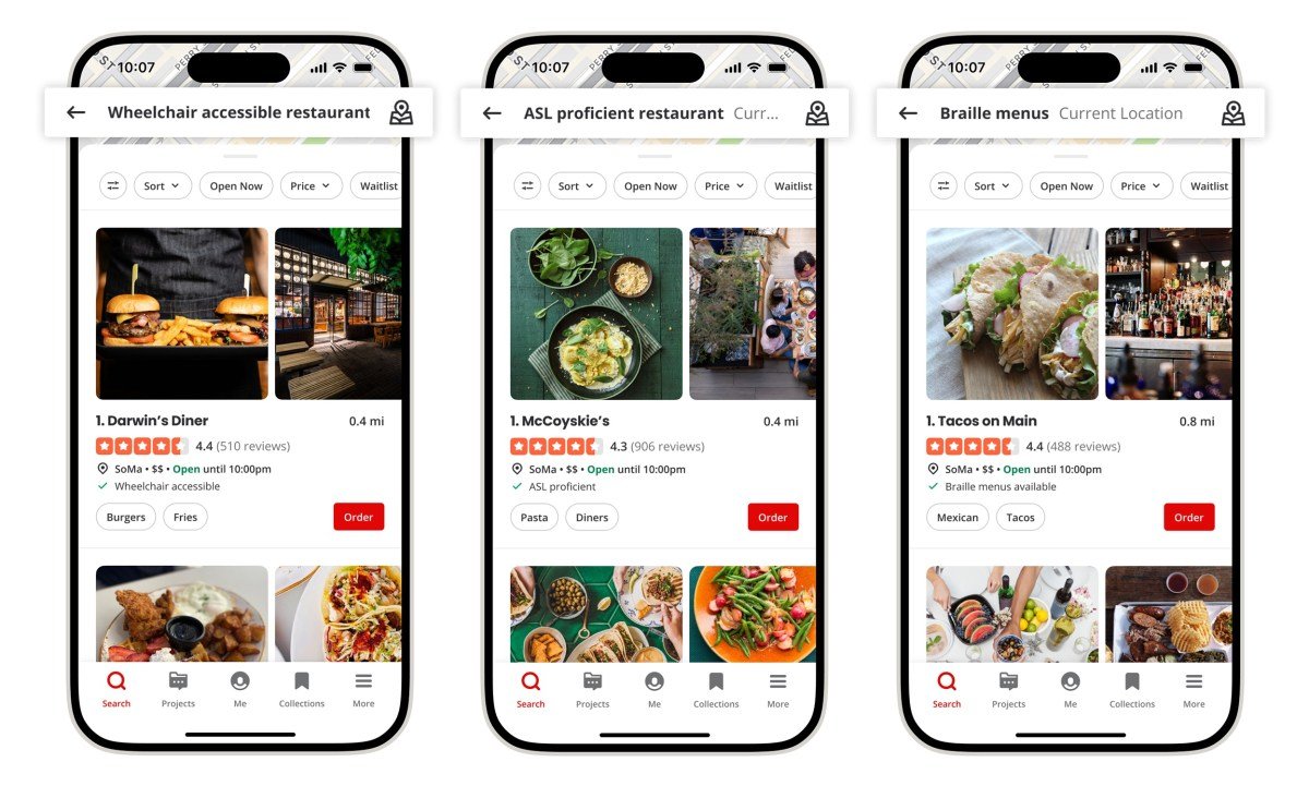 Yelp se asoció con Disability:IN, la Asociación Americana de Personas con Discapacidades (AAPD), Open to All y The Arc para definir estos atributos.